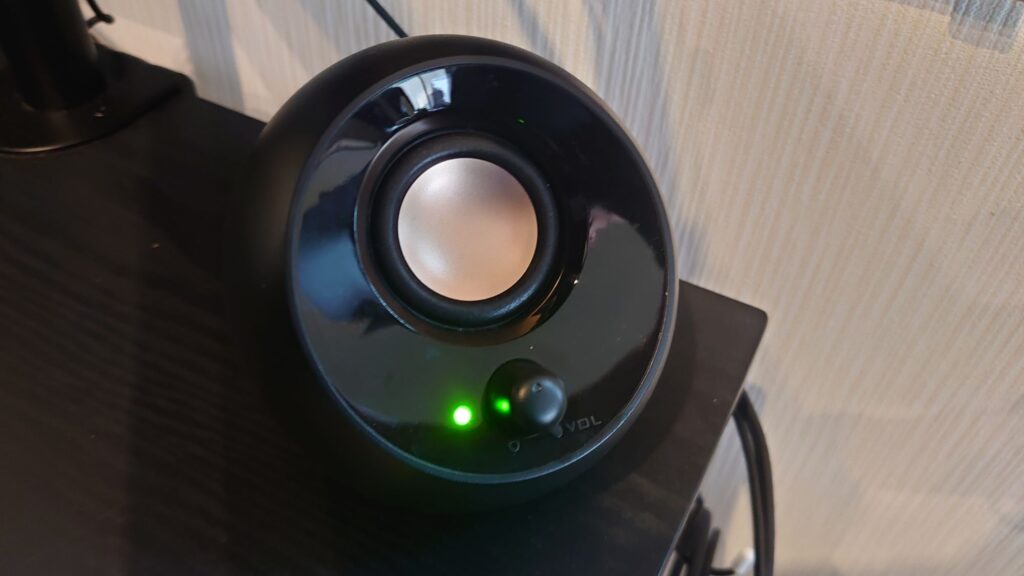 仕事中の気分転換やBGMに欠かせないのが、Creative PebbleのPCスピーカーです。