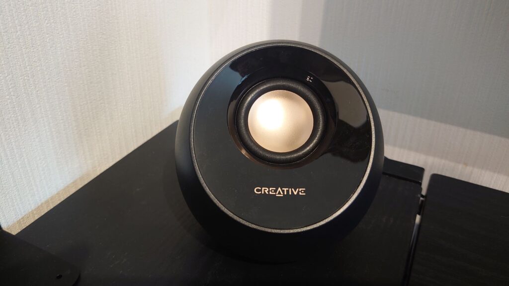 もちろん音量は落ちますが、リビングでそんなに爆音を出す必要はないので、リビングのPCスピーカーはCreative Pebbleの一択です。